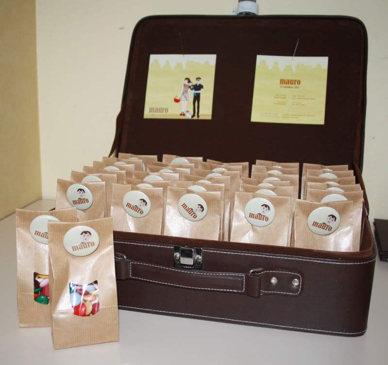 Doopsuiker die perfect match met het kaartje, gepresenteerd in een retro valieske!